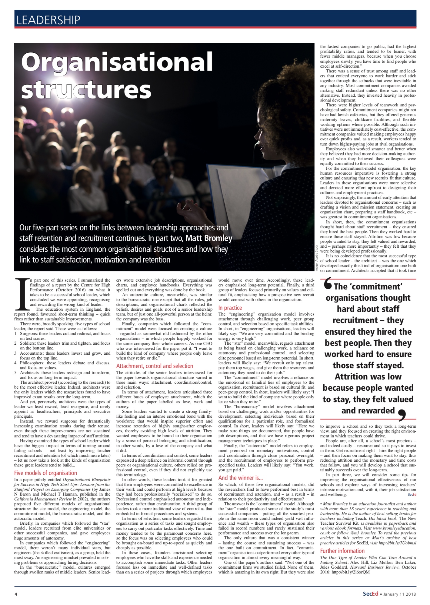Having examined the types of school leader which have the biggest impact in terms of turning around failing schools – not least by improving teacher recruitment and retention (of which much more later) – let us now take a look at the kinds of organisation these great leaders tend to build…