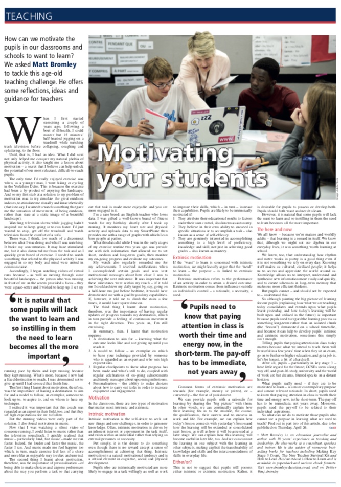 Until, that is, I had an idea. What I did next not only helped me conquer my natural phobia of physical activity, it also taught me a lesson about motivation – a secret that I believe can help unlock the potential of our most reluctant, difficult-to-reach pupils.