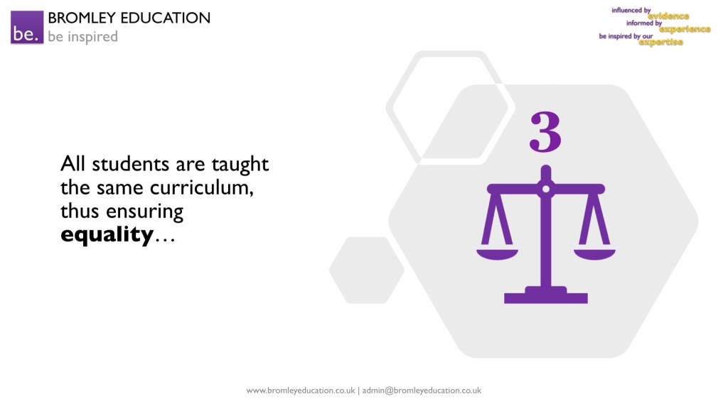 Third, all students are taught the same curriculum thus ensuring equality, but…