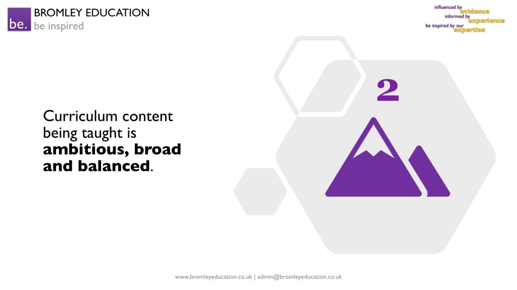 Second, the content being taught by these expert teachers is ambitious, broad and balanced. They have high expectations of what all students can learn and the knowledge, skills and understanding students acquire allow them to hit the ground running at the next stage of their learning journey. The content is sufficiently broad so as to prepare students for what comes next but is also taught with appropriate depth so as to ensure genuine understanding and aid transferability.