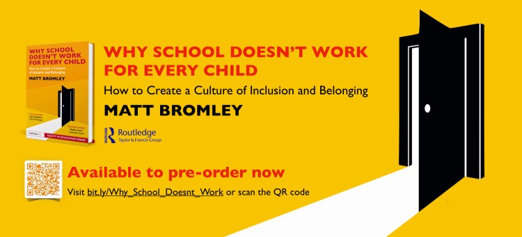 Matt’s next book, out in May 2025 and published by Routledge, is called Why School Doesn’t Work for Every Child and explores ways of creating more inclusive schools.