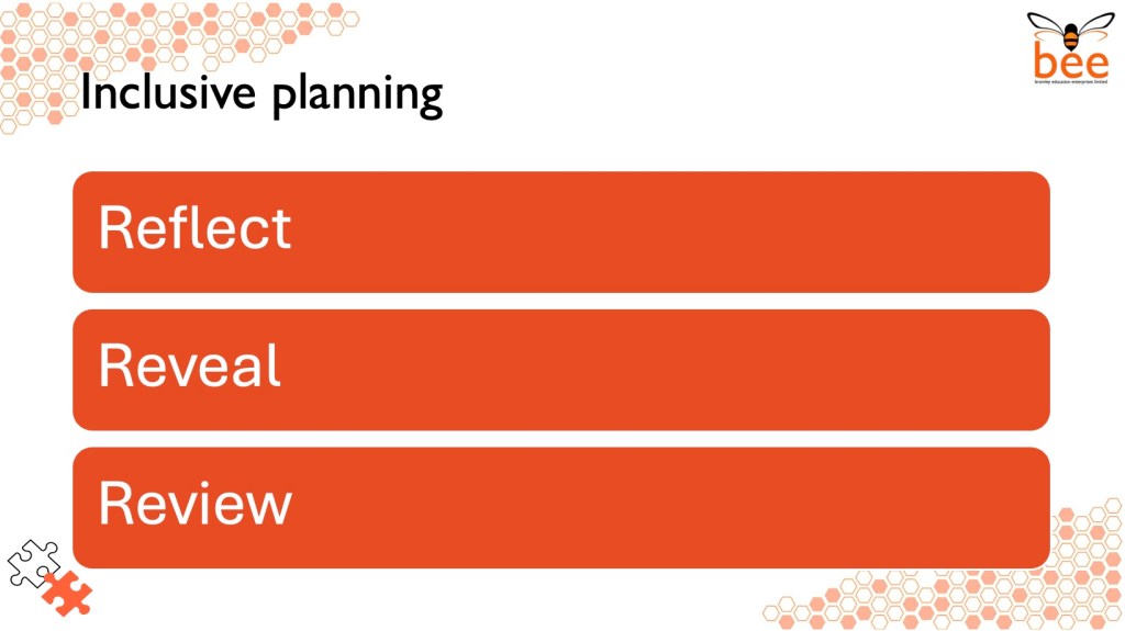 Inclusivity means being flexible and responsive in the moment, as well as planning ahead to meet diverse needs. As such, we should regularly check for understanding during lessons and adjust our teaching based on what learners demonstrate they know and can do. We might pose targeted questions or use mini whiteboards to assess understanding before moving on.