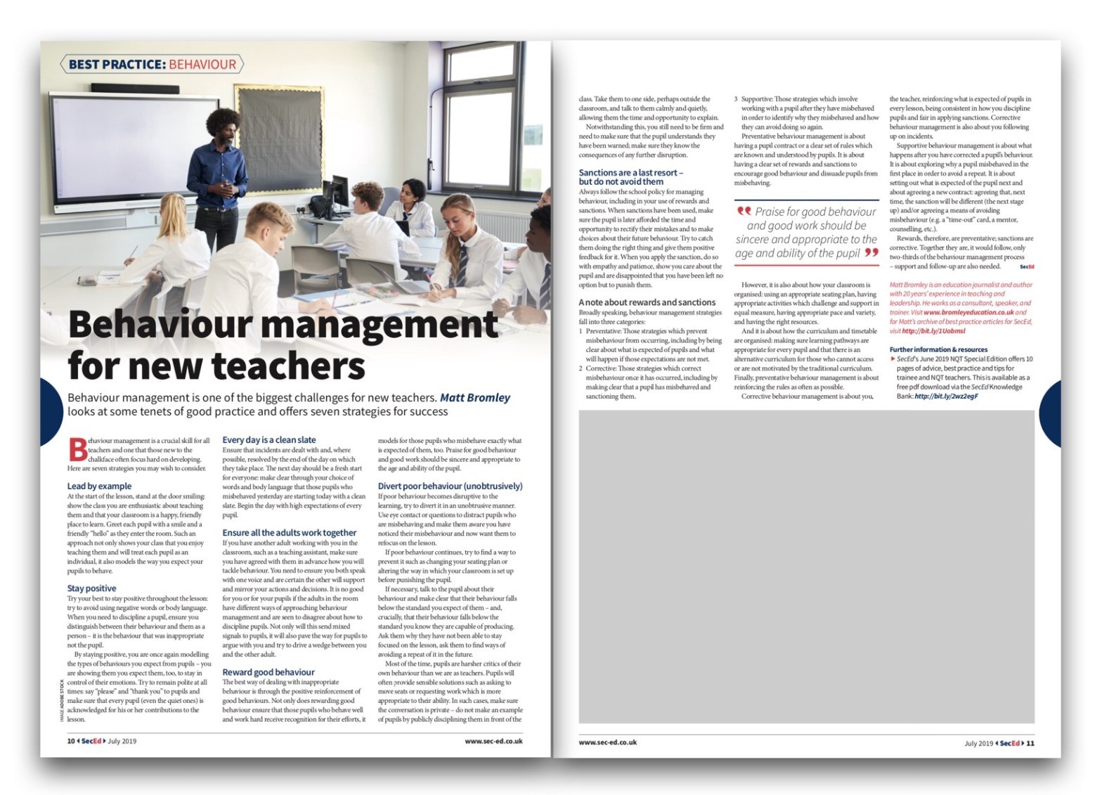 This article was written for SecEd magazine and first published in July 2019. You can read the original version on the SecEd website here. You can access the full archive of my columns for SecEd here. Behaviour management is a crucial skill for all teachers and one that those new to the chalkface often focusContinue reading “Behaviour management advice for new teachers”