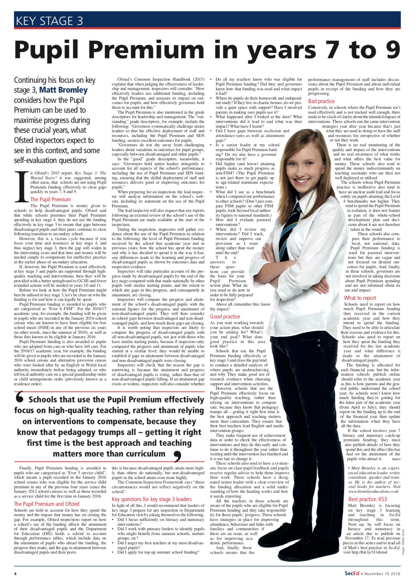 Key Stage 3: Effective use of the Pupil Premium