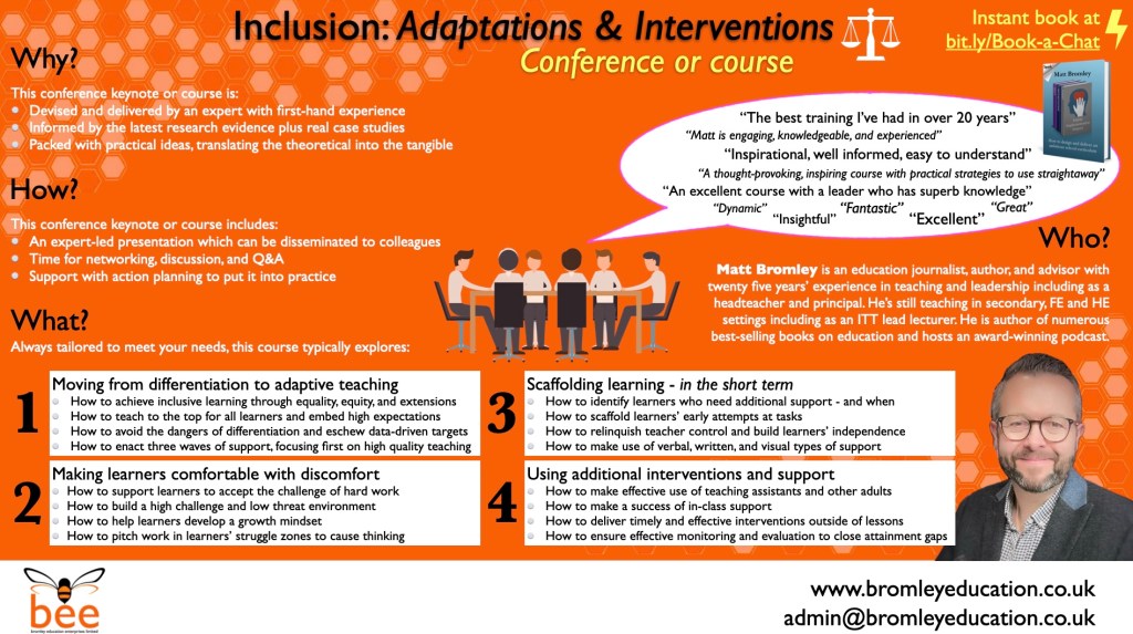 Inclusion: Adaptations and Interventions Conference keynote or course To enquire about booking this course, please visit our contact page. Like Loading...