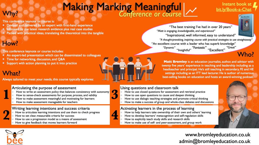 Making Marking Meaningful Conference keynote or course To enquire about booking this course, please visit our contact page. Like Loading...