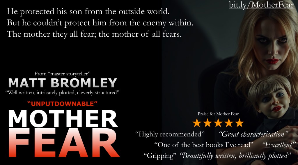 RAW HONESTY: This a brave subject for a first novel. Mother Fear explores toxic relationships and effect that this has on families, especially children. Matt Bromley’s writing effectively conveys the raw emotions at the heart of the story and lays bear the anger and grief as his protagonist’s life seems to dissolve around him and he comes up against the unfeeling bureaucracy of a system seemingly weighted against him. It makes for a difficult read at times – and I mean that as a compliment since these are difficult subjects to explore – but the author writes with convincing authority and honesty about the subject. A strong effort for a first novel.